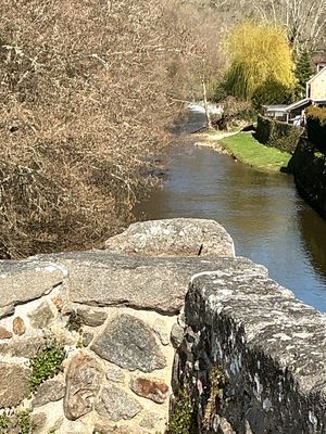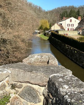De cette croix, il ne subsiste aujourd’hui qu’une mortaise, située sur l’un des avant-becs de l’arche centrale. Elle a vraisemblablement été détruite à la Révolution. Ce pont médiéval, daté des XIVᵉ et XVᵉ siècles, mesure une quarantaine de mètres de long. Il se compose de trois travées : deux arches romanes en plein cintre (à l’ouest et au centre) et une arche légèrement brisée, d’inspiration gothique, à l’est. L’arche centrale, plus élevée que les autres, entraîne une brisure du tablier. Des becs triangulaires protègent chacune des piles. Élevés jusqu’à la chaussée, ils forment de petites gares d’évitement. Le parapet a été modifié à l’extrémité est par l’aménagement d’un escalier moderne menant à la berge. L’ouvrage a sans doute été fortifié, la ville étant autrefois défendue par des remparts, démolis avant la fin du XVIIIᵉ siècle. C’est par ce pont que Charles VII fit son entrée dans la ville après sa prise, celle-ci ayant soutenu le futur Louis XI, alors en révolte contre son père.