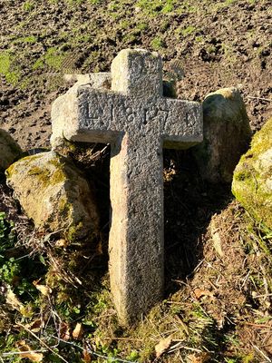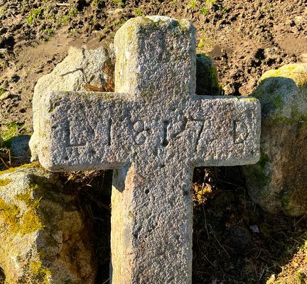 Cette croix latine simple est en granit. Elle est posée sur un mur en pierre sèche, dans la parcelle cadastrée « la Vergne ». on peut lire gravé en creux L . 1817 . D. Lors du remembrement de la commune, cette croix se situait au sommet de la colline, près d’un chemin creux, elle risquait de disparaître sous les énormes engins de chantier. René Maumy, agriculteur au village de Paulhac, possédait des champs tout proches. Il décida de la déplacer vers cette petite maisonnette dite « la Loge », afin de la protéger.