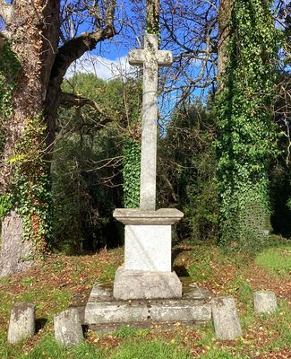 Cette haute croix latine chanfreinée est en granit. Elle est scellée dans une table moulurée en doucine. Le piédestal, de forme parallélépipédique, repose sur une base également moulurée. Elle ne comporte aucune figuration.
