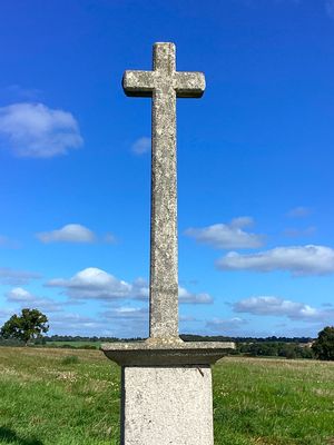 Cette haute croix latine chanfreinée est en granit. Elle est scellée dans une table moulurée en doucine. Le piédestal, de forme parallélépipédique, repose sur une base également moulurée. L’ensemble ne présente aucune ornementation figurée. Cette croix est identique à celles de La Villatte et de La Grande Jupille, elles auraient été réalisées par le même tailleur de pierre au début du XXᵉ siècle.