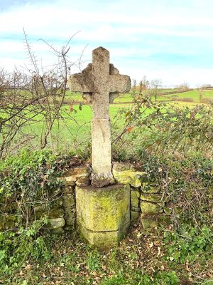 Cette croix, datée de 1860, est taillée en granit et présente des extrémités en pointe de diamant. Le croisillon droit repose sur quatre écoinçons saillants formant des culots sous les bras. Le fût, brisé accidentellement par une broyeuse, a été restauré. Elle est érigée sur un double socle de plan octogonal, scellé dans un mur en pierres sèches. Le château du Marchat connut ses heures de gloire à l’époque de sa construction, vers 1865. Il fut commandé par Jean-Baptiste Maisonneuve, important propriétaire terrien et maire de Saint-Agnant-de-Versillat de 1853 à 1866. Jean-Baptiste Maisonneuve, né à Saint-Agnant-de-Versillat en 1802, était le fils de Jean Maisonneuve et de Marie Aumasson. Ses parents étaient sans doute modestes et illettrés, l’acte de naissance étant signé d’une croix.