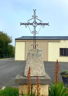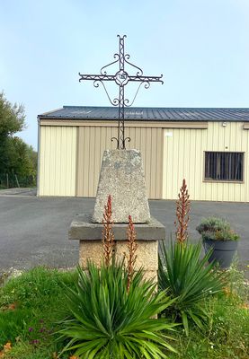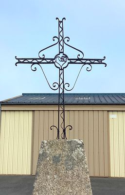 Cette croix en fer forgé présente, au centre du croisillon, un motif en forme de cœur. Le reste de la décoration se compose de volutes et de consoles finement travaillées. Elle est scellée dans un socle en granit de forme pyramidale. La table, simple, est constituée d’une pierre volcanique, probablement une ancienne dalle funéraire, sur laquelle on distingue en creux la fin d’une gravure correspondant au nom de Maurice CHAMBRAUD et à la date de 1842. L’ensemble repose sur un piédestal en pierre appareillée.