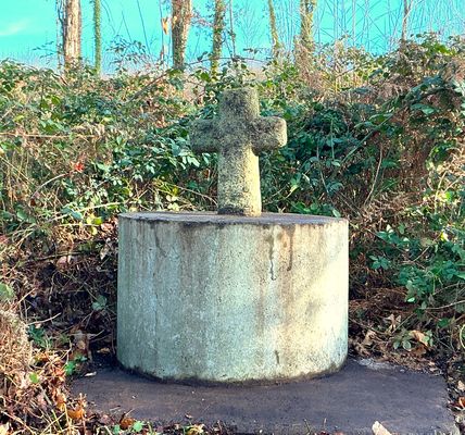 Ce travail de restauration a été réalisé par René Poujaud, connu localement pour sa profonde piété. La croix est aujourd’hui très difficile à repérer : elle se situe en bordure d’un chemin creux, au cœur d’une zone forestière dense, largement envahie par la végétation.