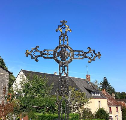 Cette croix latine aux arêtes chanfreinées est insérée dans un socle mouluré, orné d’une gorge à son sommet, et possède une base carrée (probablement une pierre de réemploi). Ce socle repose sur une épaisse table. Au pied de la croix se trouve un emmarchement de deux degrés. Il est bien attesté qu'il existait une chapelle à Darnatune, aujourd'hui connue sous le nom de Darnat. Cette chapelle dépendait de la commanderie de Lavaufranche, un établissement des Chevaliers de Saint-Jean de Jérusalem (Hospitaliers). Elle est mentionnée dans les archives historiques, notamment dans les cartulaires et les documents ecclésiastiques relatifs à la commanderie. La chapelle de Darnatune servait probablement à la dévotion locale. Son affiliation à la commanderie de Lavaufranche suggère qu'elle faisait partie d'un réseau d'établissements religieux gérés par cet ordre militaire et hospitalier, qui avait des responsabilités spirituelles et administratives dans la région.