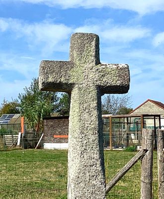 Cette croix latine, réalisée en granit, se caractérise par un fût légèrement pyramidal. Celui-ci est directement inséré dans un socle monolithe, sans éléments rapportés. L’ensemble présente une forme sobre et dépouillée, la croix ne comporte ni ornementation figurée ni indication de millésime.