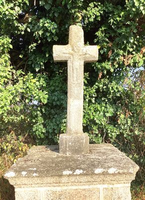 Cette croix latine en granit peut être datée du début du XXᵉ siècle. Au centre du croisillon est sculpté en relief un Christ en croix de style rustique. Elle est intégrée dans un petit dé carré, posé sur une table moulurée d’une doucine. Le piédestal, en pierre de taille, est magnifiquement appareillé. À sa base se trouve un reposoir.