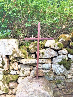 Cette croix, de facture classique, est en fer forgé, reconnaissable à ses embouts épointés. Elle est scellée dans un bloc de granit dont le sommet présente un chanfrein irrégulier, probablement dû à l’usure ou à une taille sommaire. En 2022, la croix se trouvait dans un état de dégradation avancée, témoin du temps et de l’exposition aux intempéries. Elle marquait autrefois l’entrée de l’ancien chemin reliant Bellegarde-en-Marche au hameau des Bierges, soulignant ainsi sa fonction à la fois religieuse et topographique, à la croisée des usages spirituels et ruraux.