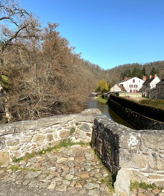 De cette croix, il ne subsiste aujourd’hui qu’une mortaise, située sur l’un des avant-becs de l’arche centrale. Elle a vraisemblablement été détruite à la Révolution. Ce pont médiéval, daté des XIVᵉ et XVᵉ siècles, mesure une quarantaine de mètres de long. Il se compose de trois travées : deux arches romanes en plein cintre (à l’ouest et au centre) et une arche légèrement brisée, d’inspiration gothique, à l’est. L’arche centrale, plus élevée que les autres, entraîne une brisure du tablier. Des becs triangulaires protègent chacune des piles. Élevés jusqu’à la chaussée, ils forment de petites gares d’évitement. Le parapet a été modifié à l’extrémité est par l’aménagement d’un escalier moderne menant à la berge. L’ouvrage a sans doute été fortifié, la ville étant autrefois défendue par des remparts, démolis avant la fin du XVIIIᵉ siècle. C’est par ce pont que Charles VII fit son entrée dans la ville après sa prise, celle-ci ayant soutenu le futur Louis XI, alors en révolte contre son père.