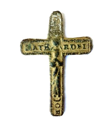 Sur le bras horizontal de la croix : inscription MATER DEI (Mère de Dieu).