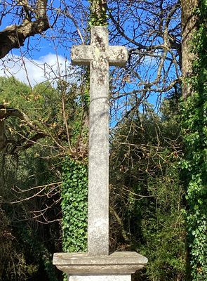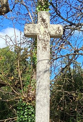 Cette haute croix latine chanfreinée est en granit. Elle est scellée dans une table moulurée en doucine. Le piédestal, de forme parallélépipédique, repose sur une base également moulurée. Elle ne comporte aucune figuration.
