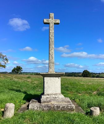 Cette haute croix latine chanfreinée est en granit. Elle est scellée dans une table moulurée en doucine. Le piédestal, de forme parallélépipédique, repose sur une base également moulurée. L’ensemble ne présente aucune ornementation figurée. Cette croix est identique à celles de La Villatte et de La Grande Jupille, elles auraient été réalisées par le même tailleur de pierre au début du XXᵉ siècle.