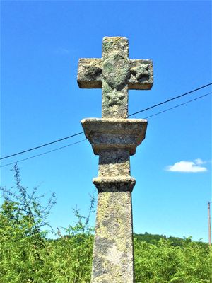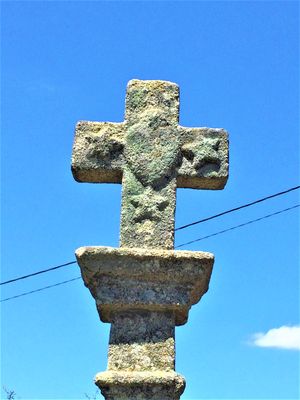 Cette croix en granit est sculptée au centre du croisillon d’un cœur et de chaque côté, de trois-étoiles à cinq branches faisant référence aux libres-penseurs. Le fût est entrecoupé par une collerette et un chapiteau, il est posé sur un dé mouluré. Un gros socle cubique supporte l’ensemble. Cette croix, qui aurait été taillée par un dénommé Rimareix, se trouvait dans un bien de section qui appartenait au village (Ringuet, Lenoble, Rimareix, Boneyrat), il aurait été vendu à la famille Ringuet-Sauvannet habitant le hameau.