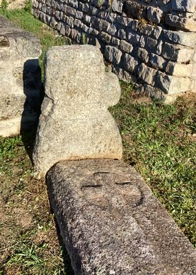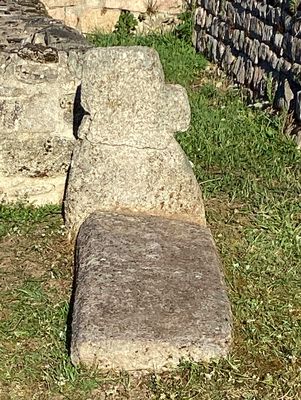 Cette croix est érigée en tête d’une pierre tombale, dans l’ancien cimetière attenant à la chapelle Saint-Martial, d’origine médiévale. Le site est très ancien, dès le milieu du VIᵉ siècle, il constitue un lieu d’évangélisation lié au passage de saint Martial. Une nécropole mérovingienne y a été identifiée. La chapelle actuelle, construite au XIIIᵉ siècle, s’implante ainsi sur des vestiges beaucoup plus anciens. Un premier édifice religieux, attesté par une maçonnerie associée à des sarcophages trapézoïdaux en calcaire et en grès, témoigne d’une occupation au haut Moyen Âge (VIᵉ-VIIᵉ siècles). Cet ensemble a ensuite été recouvert, vers le XIIᵉ siècle, par une nouvelle église rectangulaire mesurant environ 13 m de long sur 7,60 m de large, dont la nef était séparée du chœur par un muret. La croix, implantée dans ce contexte, illustre la continuité des pratiques cultuelles et funéraires sur ce site occupé de manière ininterrompue depuis le haut Moyen Âge.