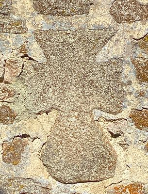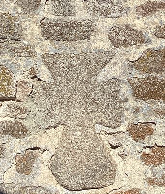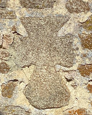 Cette croix en granit, sculptée en bas-relief et aujourd’hui insérée dans la maçonnerie d’une habitation, elle se présente sous la forme d’une croix pattée trapue, aux bras courts et évasés, avec une base arrondie et élargie, caractéristique des croix dites « de type Crozant ». Malgré l’érosion, ses contours demeurent nets et se détachent clairement de la pierre de taille environnante. Il pourrait s’agir d’une croix funéraire ou d’une petite stèle de cimetière, déplacée puis intégrée dans le bâti. Ce type de croix servait fréquemment de marqueur de sépulture ou de délimitation de nécropole. Par sa morphologie, elle se rattache au répertoire des croix funéraires médiévales, datables entre les XIᵉ et XIIIᵉ siècles, et plus particulièrement au type « Crozant », largement répandu en Creuse et en Berry. La présence attestée d’un cimetière médiéval à Toulx-Sainte-Croix renforce l’hypothèse d’une provenance funéraire. Son réemploi dans la maçonnerie domestique pourrait remonter à la construction ou à la réfection du bâtiment, probablement au XIXᵉ siècle.