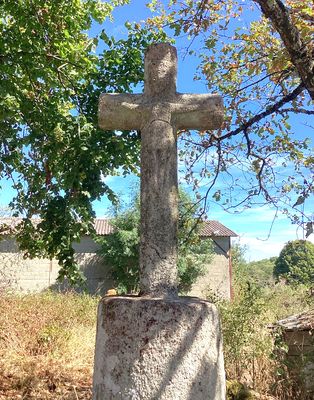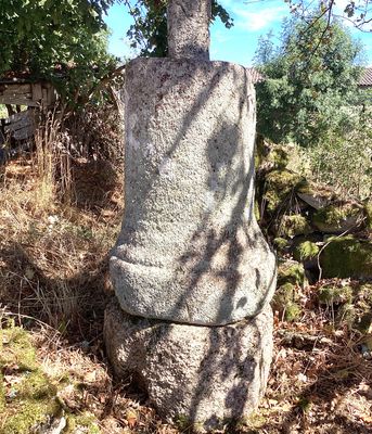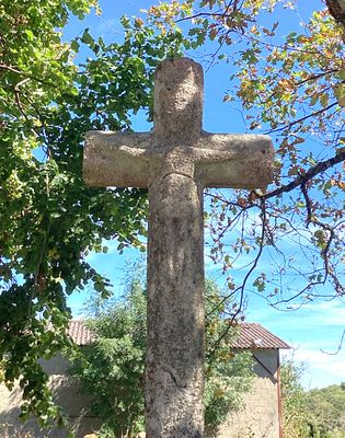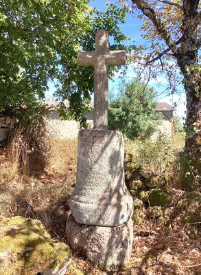 Cette croix latine, de section octogonale, porte au centre un Christ en croix sculpté de manière sommaire. Elle est érigée dans un socle de forme circulaire, qui n’est autre qu’un ancien pied de colonne réemployé, lui-même posé sur un piédestal de forme polygonale. À l’origine, la croix était implantée sous un tilleul qui la protégeait. L’arbre, en se développant, finit par briser le monument. Grâce à l’initiative de Bernard Bigouret habitant du hameau, elle fut déplacée en face de son emplacement initial et ainsi préservée.