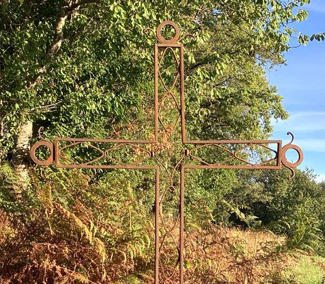Cette croix en fer forgé présente, au centre du croisillon, un cœur, tandis que les extrémités sont ornées de cercles complétés par des motifs géométriques. Elle est scellée dans un socle en granit de forme de pyramide tronquée. Le 22 août 2005, Bernard Bourdeau rapportait : « Cette croix, située à un carrefour de plusieurs chemins creux, se trouvait sur le chemin des écoliers que j’empruntais chaque jour pour aller à l’école du bourg. »