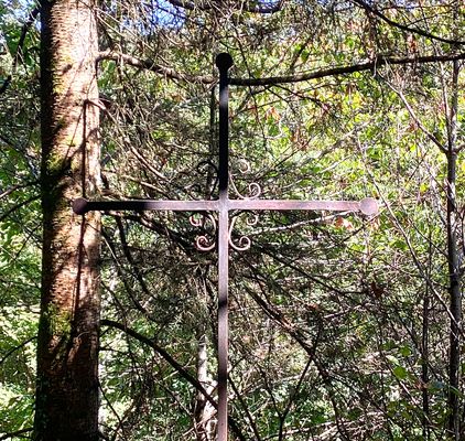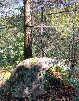 La « croix de Jacques » est une croix en fer forgé, caractérisée par des extrémités bouletées et un croisillon orné en son centre de quatre volutes décoratives. Elle est scellée dans un imposant rocher, ce qui lui confère un ancrage particulier. Sa position en bordure de l’ancienne voie gallo-romaine reliant Bourges à Limoges suggère un rôle de repère, voire de lieu de dévotion pour les voyageurs. Cette implantation témoigne à la fois de la persistance de la mémoire des anciens chemins et de l’enracinement des pratiques religieuses locales.