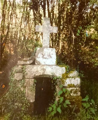 Cette croix latine, taillée dans le granit, était insérée dans un socle monolithe. Elle se dressait au sommet de la fontaine dite « fontaine des yeux », qui se trouvait au hameau du Mont. L’eau de cette source était réputée pour ses vertus guérisseuses, en particulier contre les maladies oculaires. Des pèlerins venaient de loin dans l’espoir d’y recouvrer une vue correcte. En 2025, la croix a malheureusement été détruite.