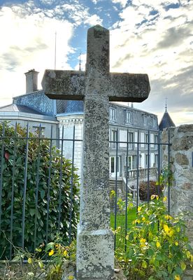 Cette croix latine en granit présente des extrémités en pointe de diamant. Le fût, légèrement pyramidal, repose sur un petit dé de plan carré, et l’ensemble est inséré dans un socle de forme pyramidale tronquée. La croix ne porte aucun millésime. Elle est située à proximité du château de Fontvieille, demeure de la seconde moitié du XIXᵉ siècle, résultant d’ajouts successifs réalisés entre environ 1870 et 1895. Le château fut aménagé par Hippolyte Sigaud, alors propriétaire d’un important domaine agricole. Le cadastre de 1824 mentionne qu’un ancien logis de ferme occupait auparavant cet emplacement, dont une partie de la structure centrale semble avoir été conservée lors de la construction de l’édifice actuel.