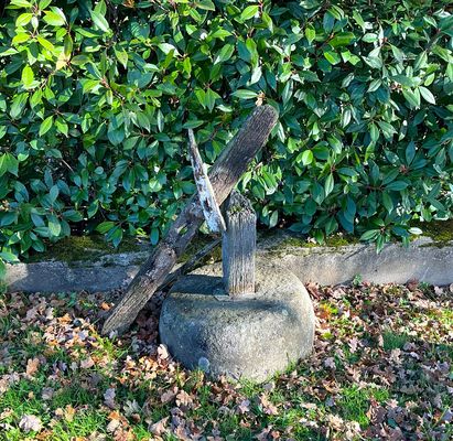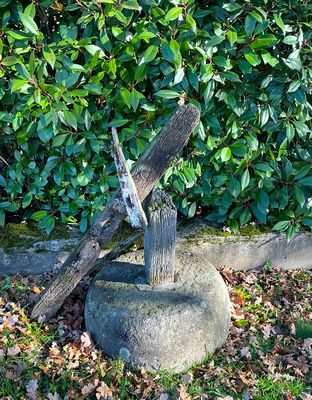 Cette croix, autrefois en bois et aujourd’hui entièrement dégradée, n’en conserve plus que quelques fragments. Son socle, en revanche, est un bel élément en granit finement taillé, de forme circulaire. En 2025, cette croix se trouve dans un état très dégradé. L’ensemble est situé à proximité d’un grand moulin désaffecté.