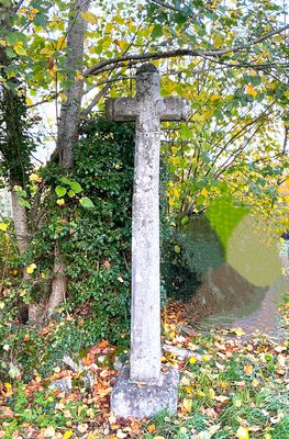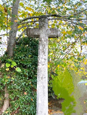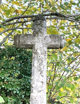 Cette croix pommetée en granit, présente des arêtes chanfreinées. Elle est fixée sur un fût monolithe légèrement pyramidal, également chanfreiné, reposant sur une base carrée. L’ensemble est inséré dans un socle de plan carré aux arêtes arasées. L’aspect hétérogène de l’ensemble suggère une composition issue de plusieurs campagnes ou époques différentes, la croix ayant fait l’objet d’une restauration. L’édicule est situé à proximité immédiate du lavoir du lieu-dit, occupant une position légèrement surélevée.