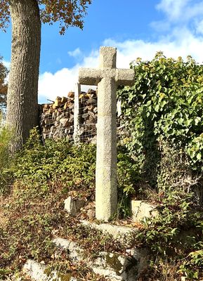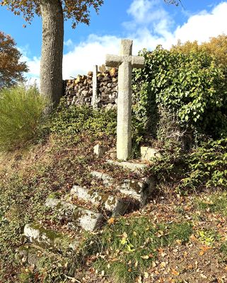 Cette croix latine, de section octogonale, est en granit. Elle ne présente ni figuration ni millésime. Elle est insérée dans un bloc de pierre rectangulaire. Sa position est assez singulière : il faut gravir cinq marches à forte pente pour l’atteindre.