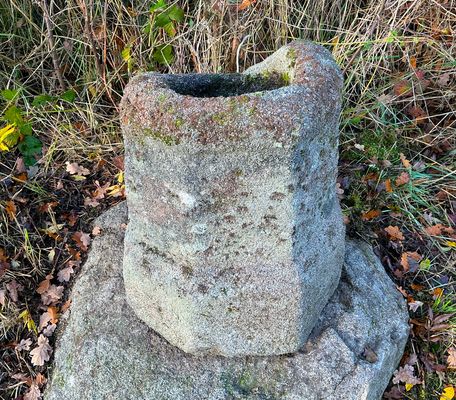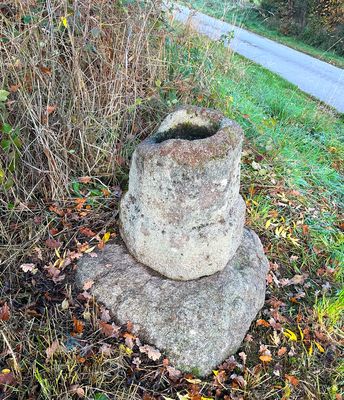 Cette croix, autrefois en granit, a aujourd’hui disparu. Seul subsiste son socle, également en granit. De forme octogonale entrecoupée d’un bourrelet, cette base imposante a très probablement supporté une croix monumentale, comme l’indique la largeur de sa mortaise. Le bloc supérieur, taillé en forme tronconique, présente sur sa partie sommitale une cavité d’emboîtement destinée à recevoir le fût de la croix. Sa facture soignée, aux contours adoucis et réguliers, laisse supposer un réemploi d’un ancien élément architectural, possiblement le pied ou le tambour d’une petite colonne. Le tout repose sur une base irrégulière, grossièrement équarrie, servant d’assise. L’aspect général du support évoque les socles de croix de chemin couramment utilisés entre le XVIIᵉ et le XIXᵉ siècle. L’hypothèse d’un réemploi d’une pierre plus ancienne, peut-être médiévale ou antique, est également plausible, la forme et le relief du bloc différant des modèles rustiques façonnés directement pour cet usage. Cette croix de chemin érigée sur un ancien chemin creux reliant Saint-Laurent au hameau du Teilloux, où elle servait probablement de repère ou de lieu de dévotion pour les habitants.