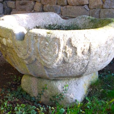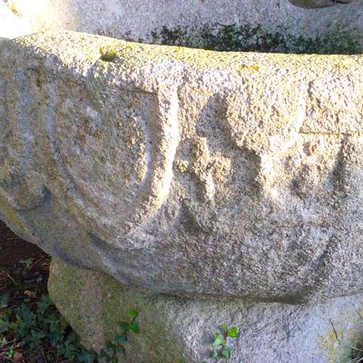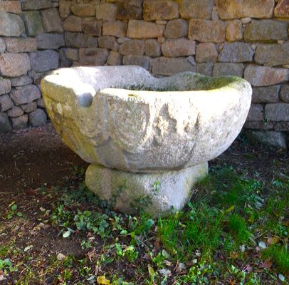 À proximité subsistent une fontaine, dont la source s’est détournée au fil du temps faute d’entretien, un lavoir rectangulaire au fond pavé, et un abreuvoir en granit percé d’un anneau d’attache. L’ensemble forme un ensemble patrimonial cohérent autour de la thématique de l’eau et du sacré.
