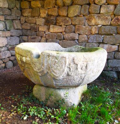 Située sur le versant du Puy de Gaudy, cette vasque monolithe en granit proviendrait de la chapelle édifiée au Xe siècle au sommet du mont, aujourd’hui disparue. Le Puy de Gaudy fut un haut lieu d’occupation humaine : oppidum fortifié à l’époque protohistorique, cimetière médiéval, puis sanctuaire chrétien dédié à Saint Germain.