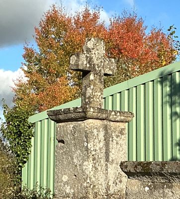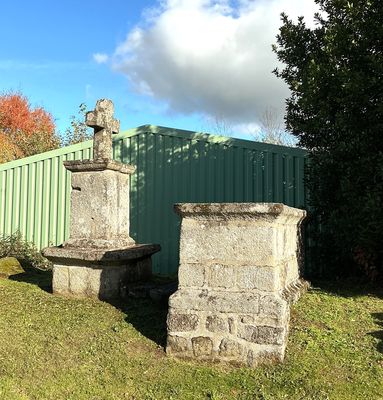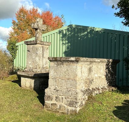 Cette croix latine simple, taillée dans le granit, est insérée dans une table moulurée à profil de doucine. Elle repose sur un piédestal parallélépipédique dont la base est également moulurée. L’ensemble est établi sur une seconde table et un soubassement en pierre de taille. Au pied de la croix se trouve une table d’autel mesurant environ 3 m sur 1,50 m, soutenue par une maçonnerie en pierres appareillées. Cette table d’autel est identique à celle du cimetière. La croix aurait été érigée en 1807, et l’on s’y rendait autrefois en procession.