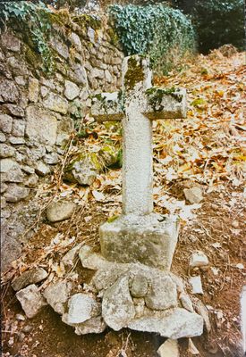 Cette croix latine en granit, aux arêtes chanfreinées, est érigée dans un socle de forme carrée, lui-même maçonné dans un mur de soutènement en pierre traditionnelle. La croix ne présente aucune figuration ni inscription. Par son emplacement et sa forme sobre, la croix également appelée croix du Gaudy, elle semble correspondre à une croix de chemin, servant probablement de repère religieux en bordure d’un ancien itinéraire rural. Selon le témoignage de Jean François Peyronnaud (recueilli le 31 octobre 2025) : « Cette croix était située de l’autre côté du mur. Pour les besoins d’un coffret électrique, le garde champêtre nous a demandé s’il ne serait pas préférable de la déplacer sur le mur de notre propriété. Affaire conclue. » Ce déplacement explique sa position actuelle, tout en assurant la préservation de cet élément du petit patrimoine religieux local.
