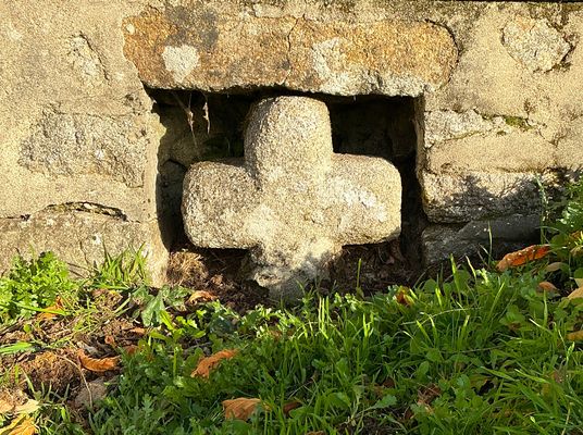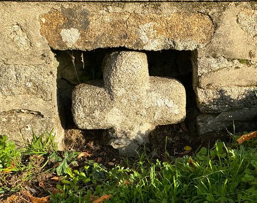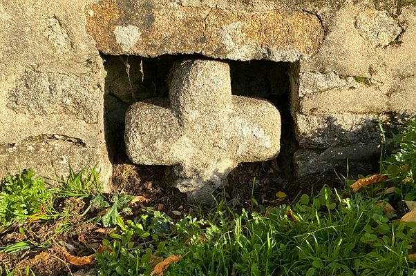 Cette petite croix en granit, aux arêtes légèrement arrondies, a été insérée dans le mur de clôture. Jean Leyrat raconte le 28 octobre 2025 : « C’est mon grand-père, Albert Farigoux, qui a fait construire cette maison vers 1920, il a inséré dans le mur cette petite croix dont on ne connaît pas la provenance. » Cette croix est vraisemblablement une croix de protection, érigée à la fin des travaux, selon une tradition encore bien présente autrefois en Limousin.