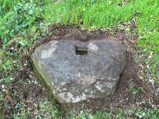 Cette croix, autrefois en bois, se dressait au bord du chemin reliant le hameau de Villedard au bourg de Sainte-Feyre. Insérée dans une mortaise taillée dans un imposant bloc de pierre, elle a disparu avec le temps, le bois ayant pourri sous l’effet des intempéries et n’ayant pas été remplacée. Il ne subsiste aujourd’hui que la pierre d’ancrage, témoin de cet ancien signe religieux.