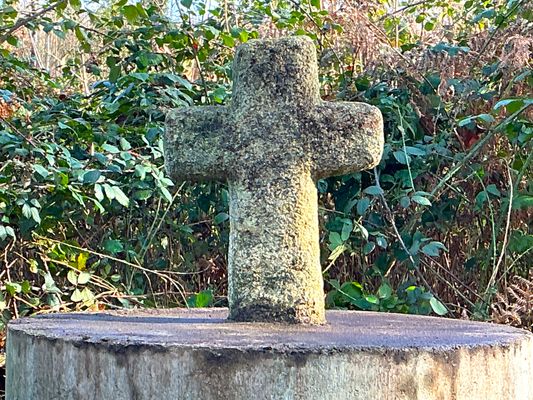 Ce travail de restauration a été réalisé par René Poujaud, connu localement pour sa profonde piété. La croix est aujourd’hui très difficile à repérer : elle se situe en bordure d’un chemin creux, au cœur d’une zone forestière dense, largement envahie par la végétation.