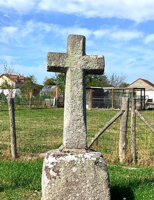 Cette croix latine, réalisée en granit, se caractérise par un fût légèrement pyramidal. Celui-ci est directement inséré dans un socle monolithe, sans éléments rapportés. L’ensemble présente une forme sobre et dépouillée, la croix ne comporte ni ornementation figurée ni indication de millésime.