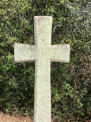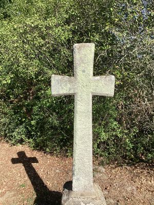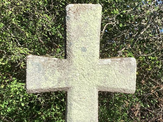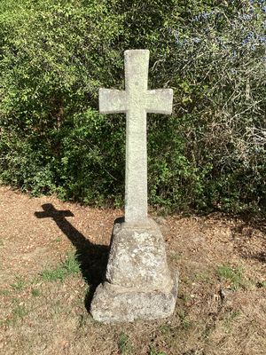 Cette haute croix latine, aux bras légèrement pattés, est taillée dans un seul bloc de pierre. Elle repose sur un socle en pyramide tronquée, lui-même posé sur une dalle de pierre. Connue également sous le nom de croix du bon Saint Silvain, elle rappelle le culte local de ce saint et témoigne de la tradition de marquer les lieux de dévotion par des croix en granit, sobres.