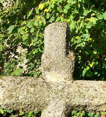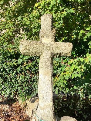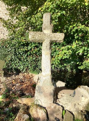 Cette croix est constituée de plusieurs éléments. Une partie du croisillon chanfreinée provient d’une ancienne croix, tandis que le bras sommitale semble être la base d’un fût de croix. Le reste du fût et le socle sont composés de pierres locales. La provenance exacte de ces éléments demeure inconnue, car ce sont les anciens propriétaires qui ont réalisé cette croix et l’ont érigée dans le jardin, à proximité du puits.