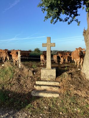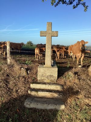 Cette croix latine simple ne comporte ni figuration ni millésime. Elle est insérée dans un socle cubique, composé de béton et de pierre. À sa base, un emmarchement de deux degrés. Elle est située sur une piste reliant le hameau de La Sciauve à celui de Javayat.