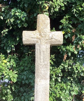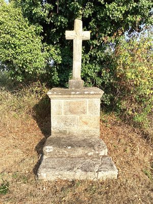 Cette croix latine en granit peut être datée du début du XXᵉ siècle. Au centre du croisillon est sculpté en relief un Christ en croix de style rustique. Elle est intégrée dans un petit dé carré, posé sur une table moulurée d’une doucine. Le piédestal, en pierre de taille, est magnifiquement appareillé. À sa base se trouve un reposoir.